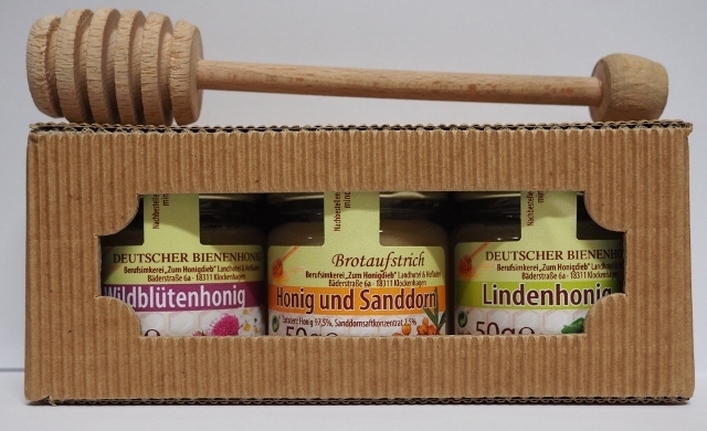 3er Honigkarton – Probier- & Geschenkset mit Honiglöffel