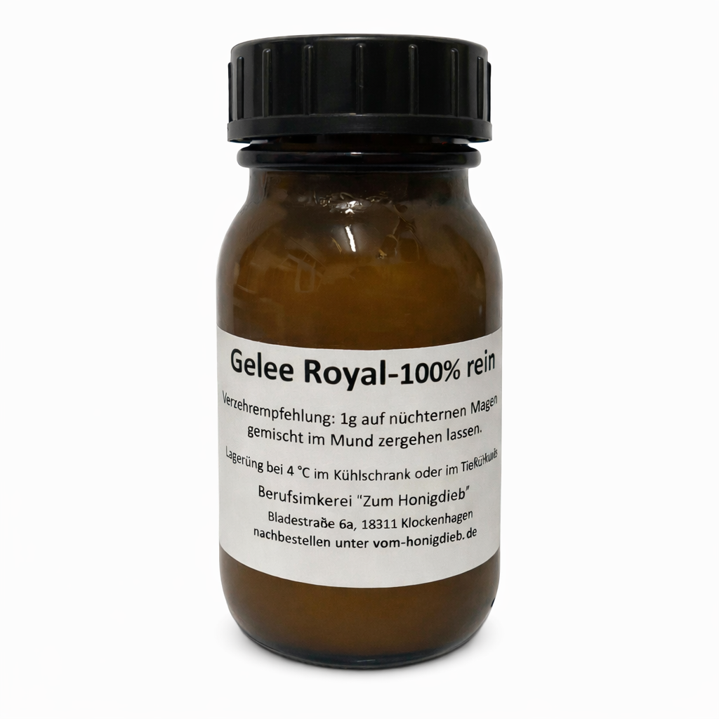 Gelee Royal ist der besondere Futtersaft, mit dem die Bienenkönigin im Bienenstock versorgt wird. Unser Gelee Royal frisch 100% ist ein reines Bienenprodukt und eignet sich als hochwertiges Ergänzungsprodukt für alle, die Wert auf natürliche Spezialitäten aus dem Bienenvolk legen.