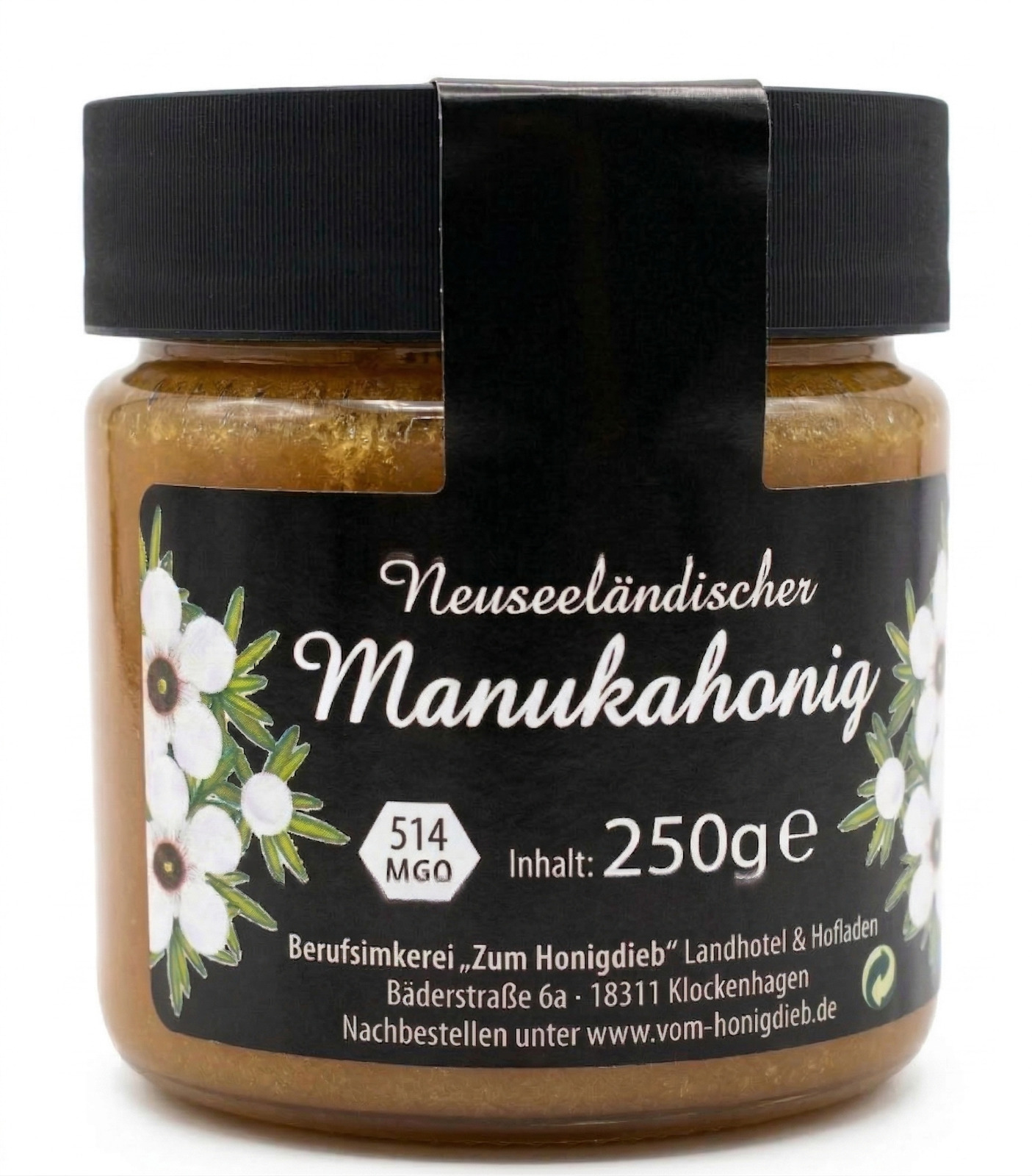 - Besondere Kennzeichnung: Der MGO-Wert (hier 514 MGO) steht für den Gehalt an Methylglyoxal
