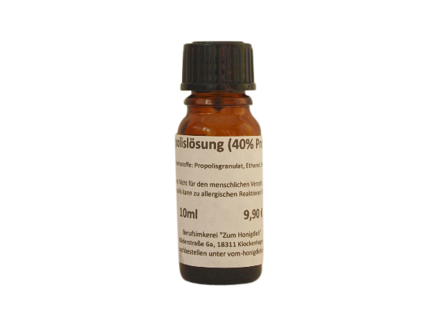 - Zutaten: Alkohol, Propolis (40%), Wasser
