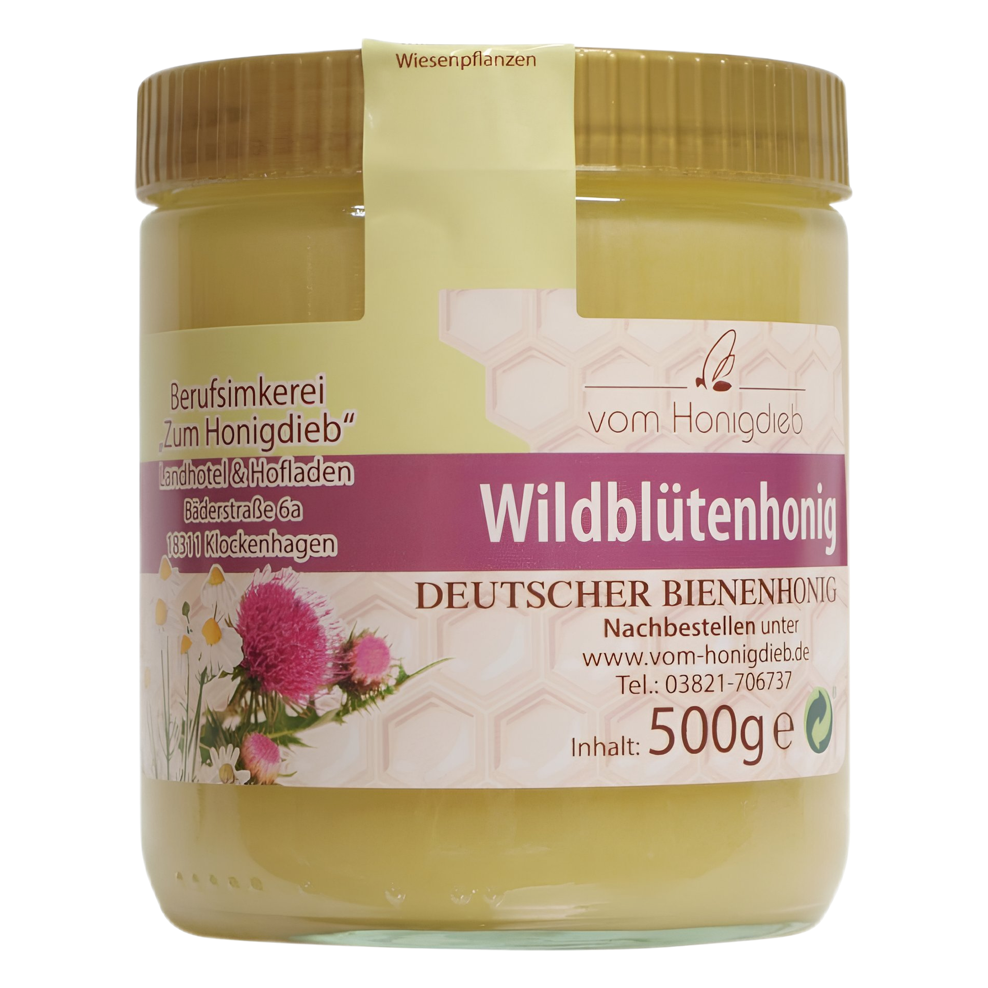 Mecklenburger Wildblüte – ein cremiger, sonnengelber Honig aus Mecklenburg-Vorpommern. Diese aromatische Mischung aus verschiedenen, gleichzeitig blühenden Nektarquellen (u. a. Kornblume und Diestel) überzeugt mit kräftigem Geschmack und ist ein beliebtes Mitbringsel – perfekt für alle, die es klassisch und sicher mögen.